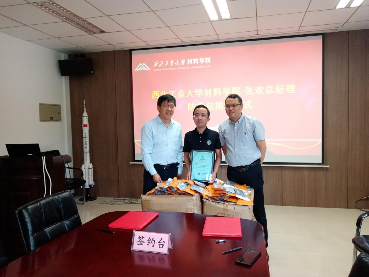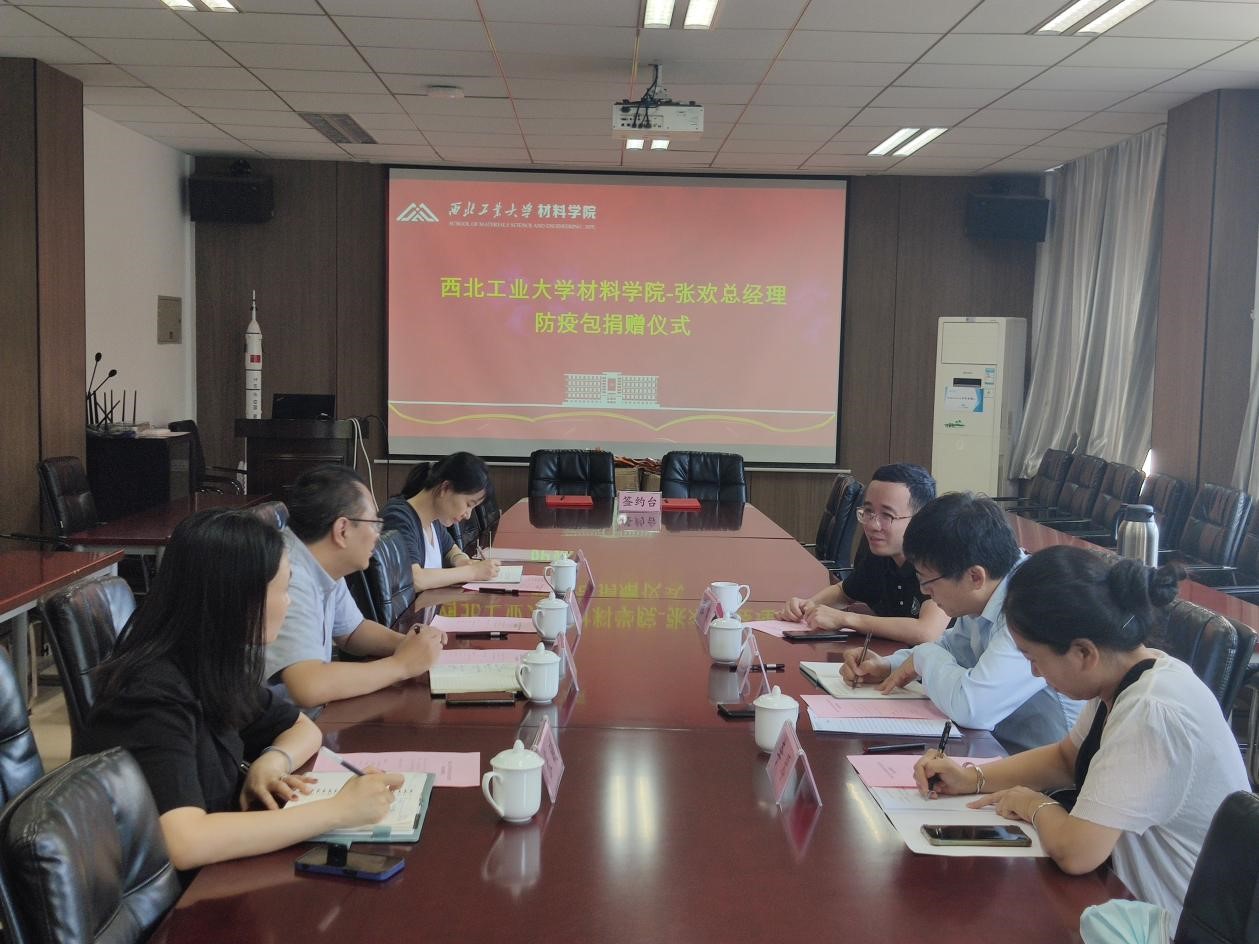 与中陕核生态环境江苏分公司张欢总经理在公字楼322会议室顺利举行了防疫包捐赠仪式。学校教育基金会秘书长张英群、天使动漫