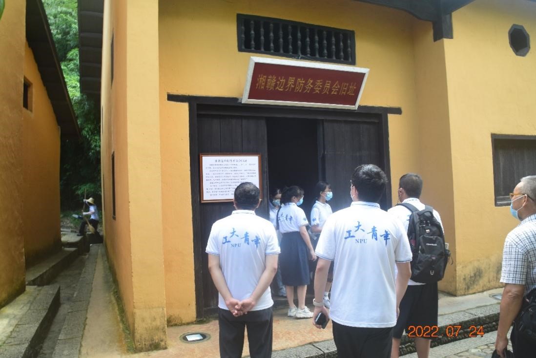 走出毛主席的故居,沿着道路行走,实践队走到了当时为井冈山根据地的发展和巩固起了重要作用的湘赣边界防务委员会的旧址。穿过湘赣边界防务委员会旧址,实践队来到了朱德同志、陈毅同志、滕代远同志的住房,房间里挂着3位革命老前辈的照片。房屋中可见的日用品——油灯和砚台,革命老前辈们白天打仗,晚上与主席一起批阅文件,在井冈山为共产主义呕心沥血,为革命殚精竭虑。这使实践队成员们想起了井冈山精神,想起了红军从红米饭南瓜汤中汲取艰苦奋斗攻克难关的精神,想起了先烈们从不拿百姓一针一线中汲取依靠百姓取得胜利的宝贵经验。伟大的井冈山精神激励着一代又一代中华儿女拼搏向前,推动着中华民族这艘巨轮驶向繁荣富强。