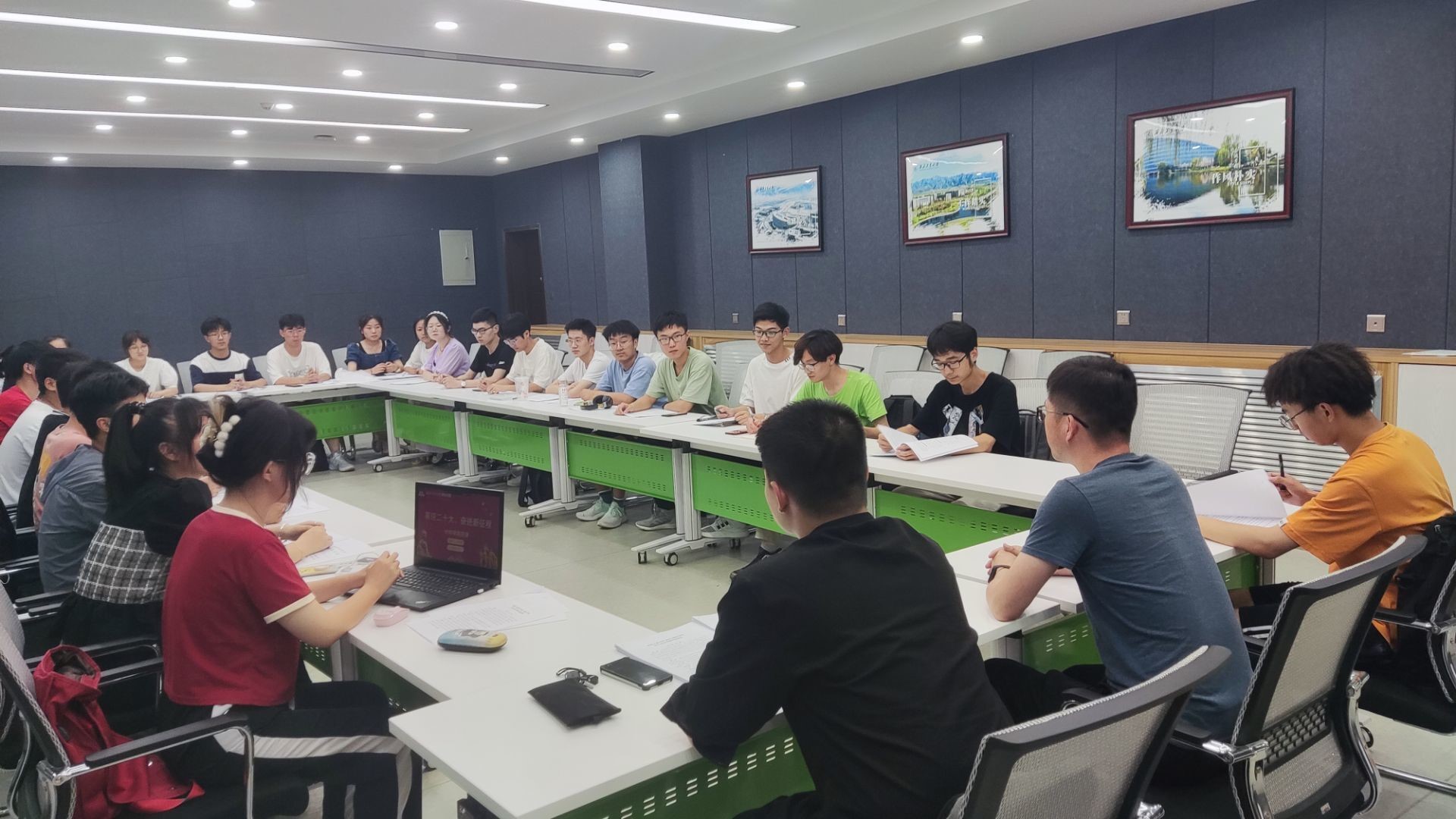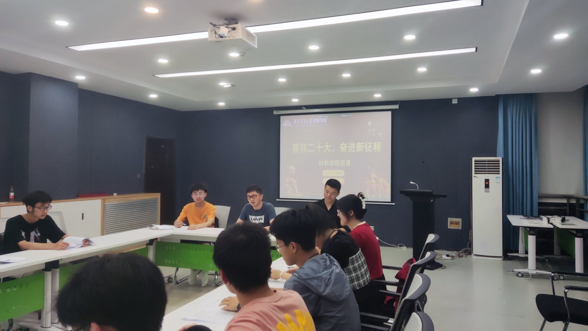 学生会在理学院353教室开展“喜迎二十大,奋进新征程”团课活动,由团委书记李治军主持带领第四届学生会全体人员进行学习。