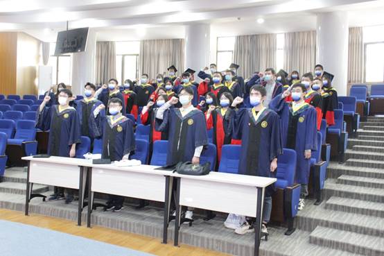 研究生代表观看学校2022年研究生毕业典礼暨学位授予仪式,高唱国歌,聆听毕业生代表、教师代表以及校友寄语,认真学习汪劲松校长所作的题为《在守正创新中砥砺前行》的讲话。