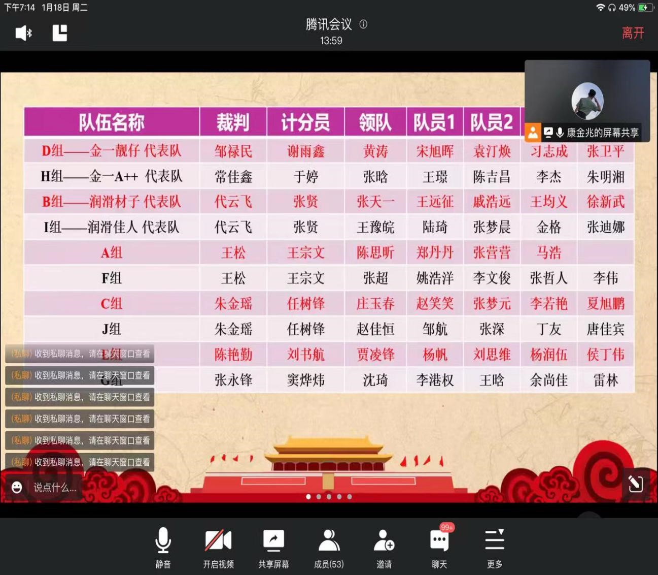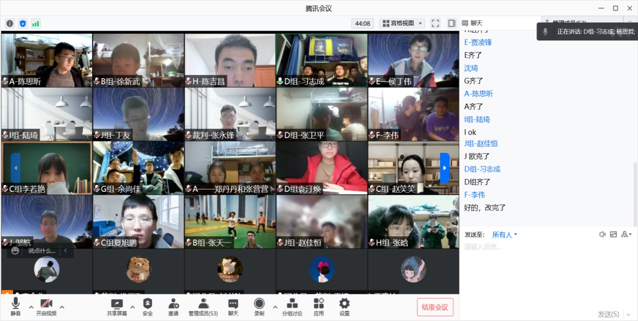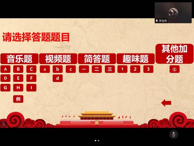 1月18日晚7:00,各支部通过腾讯会议准时开展答题活动,其中题目涉及党史知识、疫情防控举措、传统文化、节日习俗等,题型包括必答题、抢答题、加分题。答题竞赛过程进展顺利,各支部党员积极参加,认真答题。最后,由张超、姚浩洋等五位同志所在小队斩获本次知识竞赛第一名。