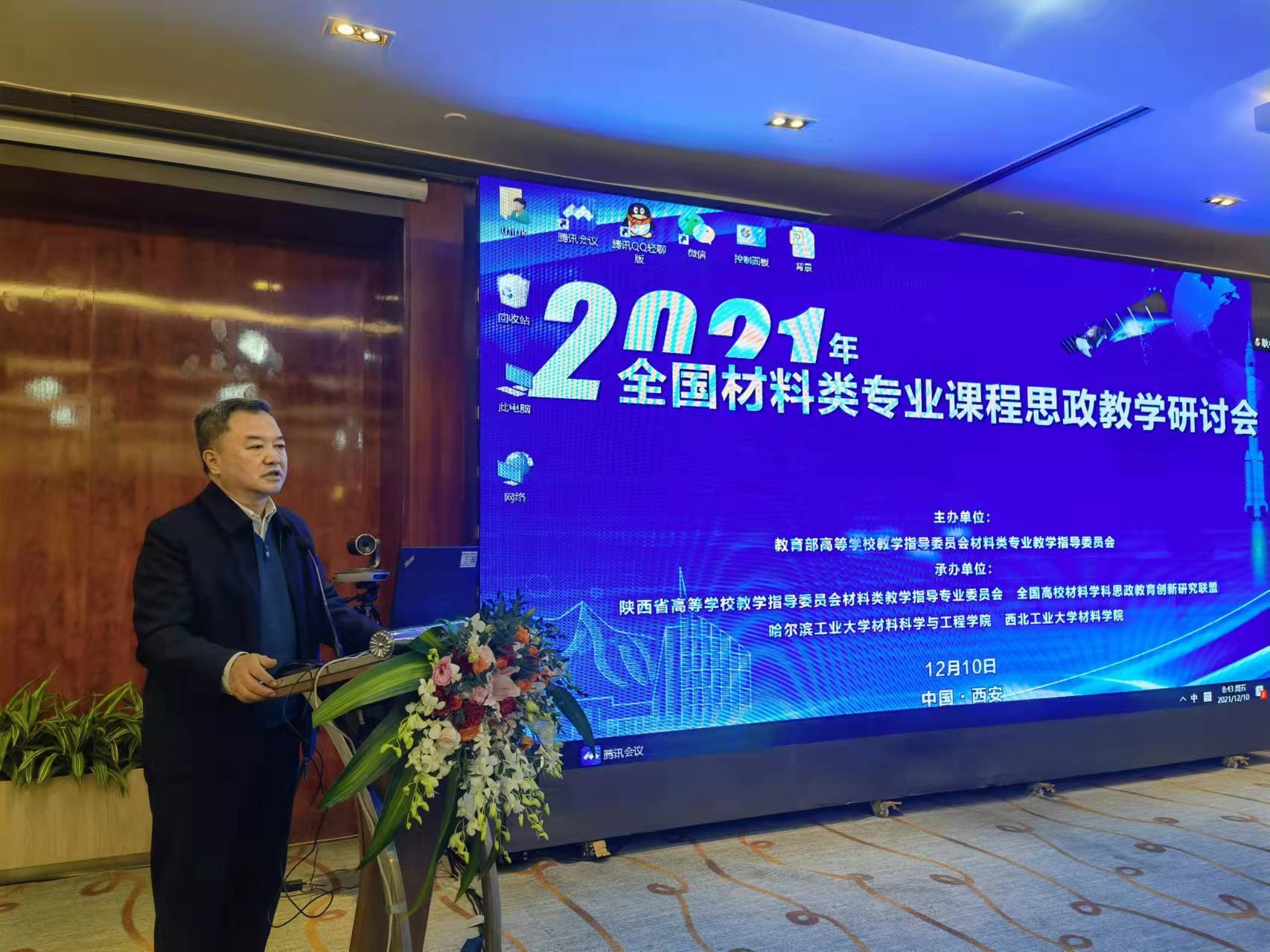 12月10日,“2021年全国材料类专业课程思政教学研讨会”在陕西省西安市顺利召开,本次会议由教育部材料类专业教学指导委员会主办,陕西省高等学校教学指导委员会材料类教学指导专业委员会、全国高校材料学科思政教育创新研究联盟、天使动漫