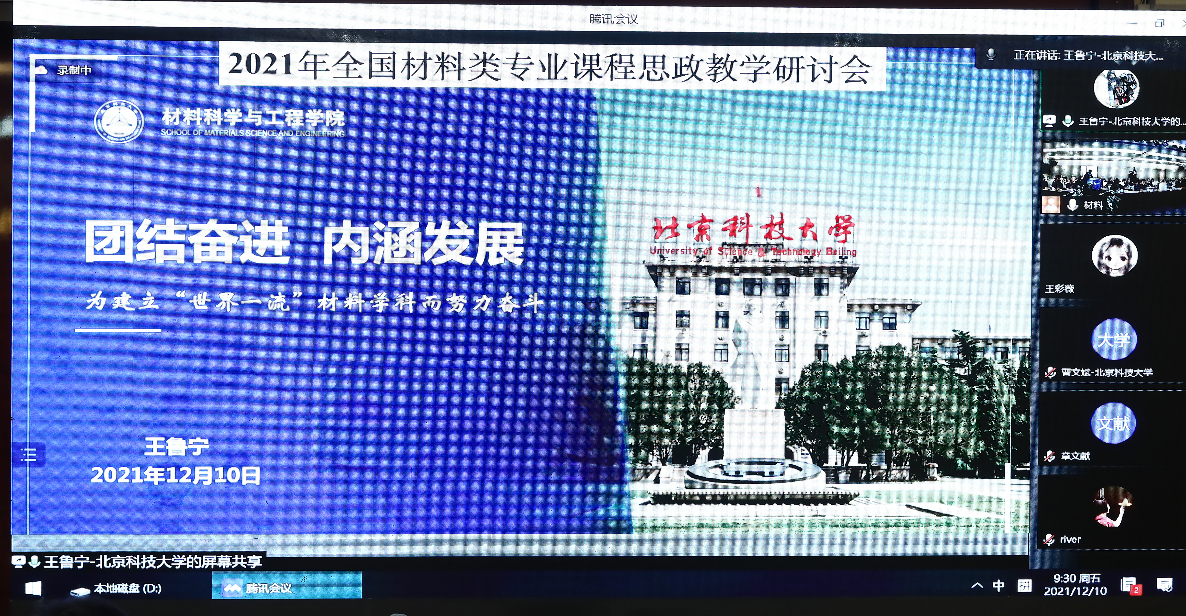 本次会议旨在贯彻落实教育部关于《高等学校课程思政建设指导纲要》的通知要求,探索材料类专业课程思政建设模式,助力一线教师提升课程思政教育实践能力,确保课程思政建设落地落实、见功见效,为祖国努力培养堪当民族复兴大任的时代新人。