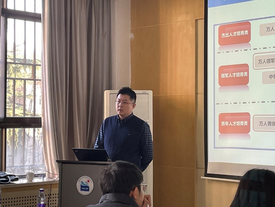 张忻详细介绍了人才计划的背景和政策、人才计划申报要点、学校及学院人才状况、人才引育基本思路,尤其对不同项目的申报条件、评审程序及填报注意事项等作了详细讲解,并解答了老师们关于项目互斥、项目资助期限等疑问。