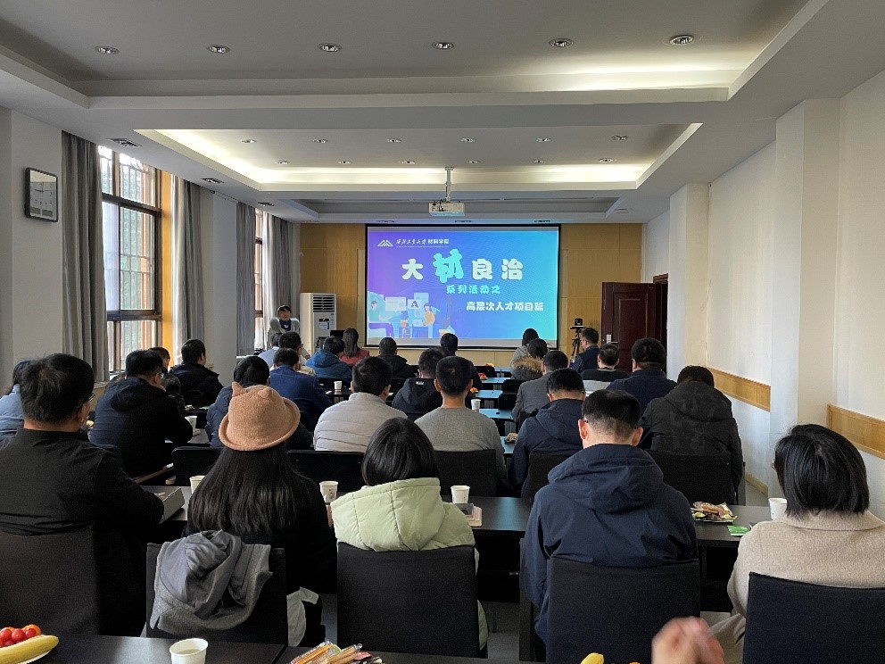 举办了“大材良治”系列活动——高层次人才引育项目宣讲活动,邀请人事处副处长张忻做人才体系和人才政策介绍。党委副书记刘伟及50余位教师参加会议。会议由党委副书记罗皎主持。