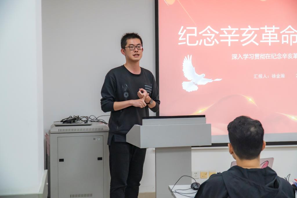 首先,金属材料第二研究生党支部书记徐金瀚在生动详细地讲述了辛亥革命的背景、经过、结果后,带领全体成员学习了习近平总书记在纪念辛亥革命110周年大会上的重要讲话,深刻阐述了辛亥革命的历史功绩和重大意义,深入学习了辛亥革命110周年来的历史启示。