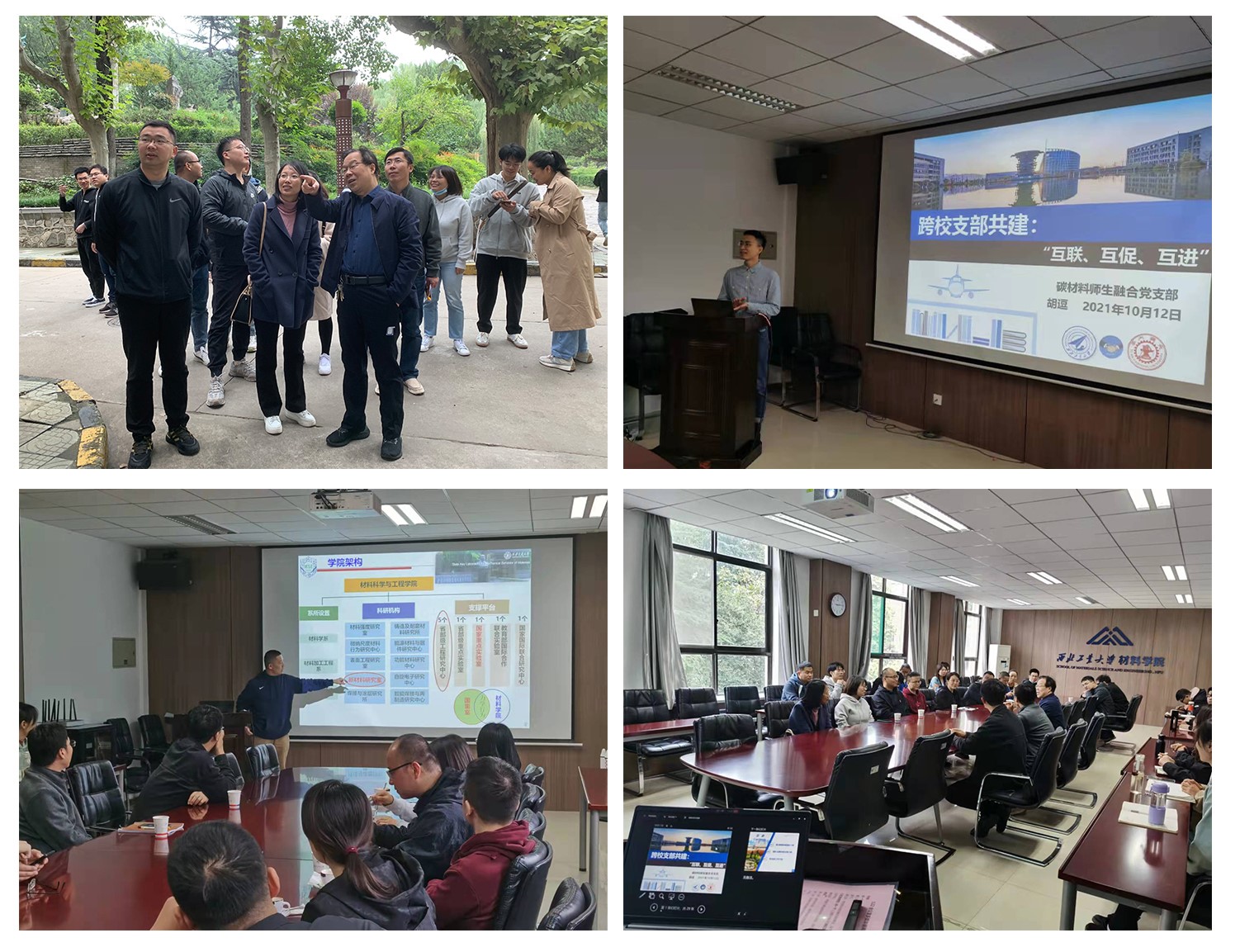 碳材料师生融合党支部联合西安交通大学陕西省先进陶瓷工程中心新材料师生联合党支部展开结对共建。为实现“以共建促党建,以党建促科研,以科研强党建”的良性循环,双方支部党员以“学术活动宣讲和党建工作介绍”、“实验室参观交流”和“重温西迁精神”为主题展开系列交流活动。