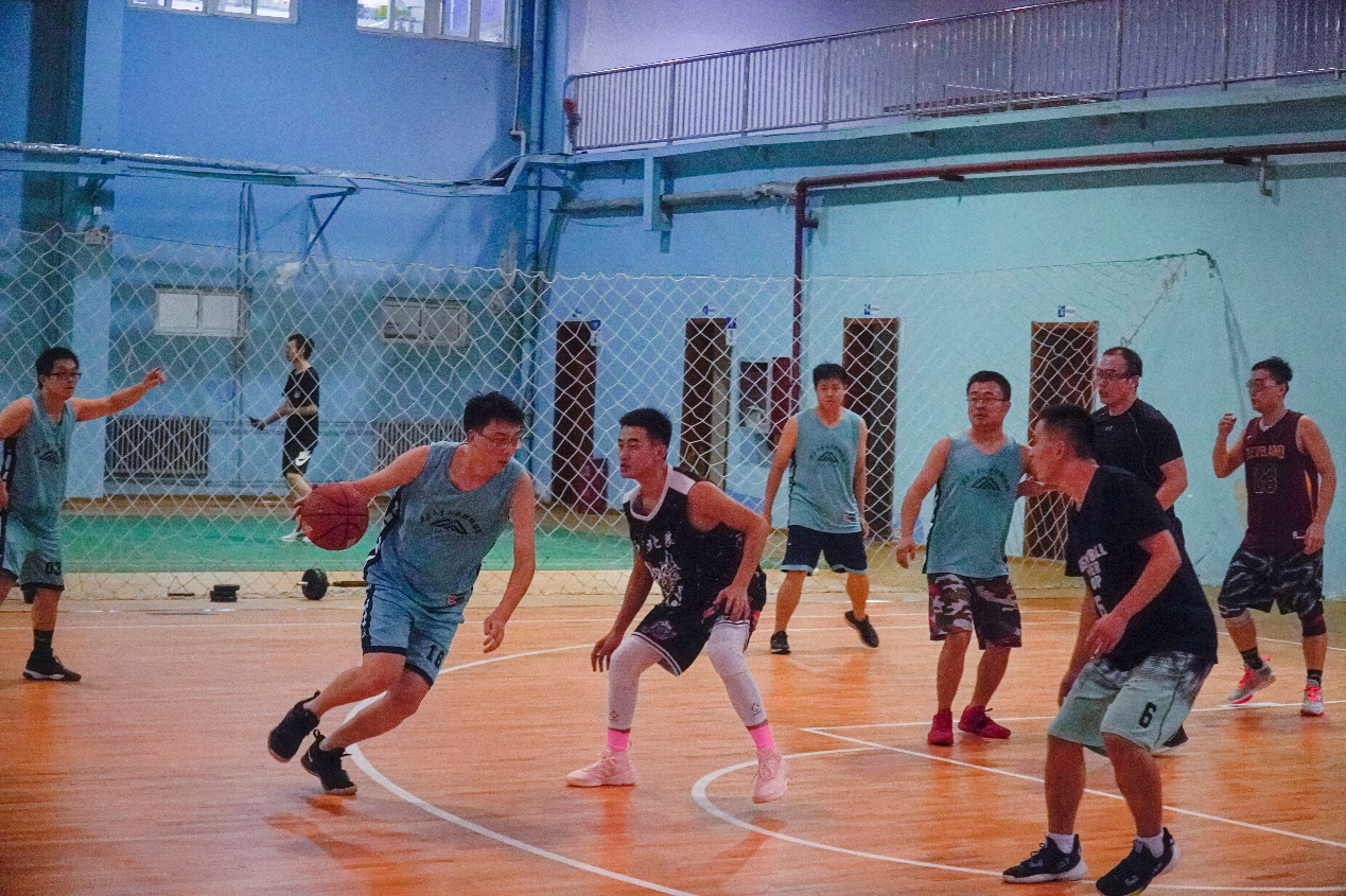 随着一声哨响,比赛开始。教职工代表队与研究生代表队你来我往,十分激烈,整个比赛打得是热火朝天。比赛第一节,教职工代表队开场打出一波小高潮,比分迅速上双。赛程过半,研究生代表队渐渐控制住场上局面,追平并实现反超比分。比赛第四节,张勇老师作为教职工代表队的教练,对场上局势进行了准确分析,合理布置战术,场上老师球员坚决执行战术,直至第四节末,教职工代表队与研究生代表队打平,双方约定对比赛加时。