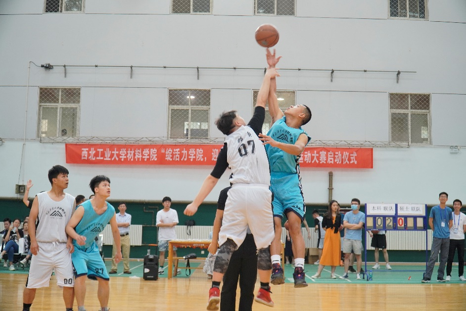 第一届“材料杯”师生融合全明星篮球赛在友谊校区翱翔训练馆火爆上演,学院党委书记付前刚,党委副书记刘伟、罗皎,院长助理杨舜出席启动仪式并观看比赛。