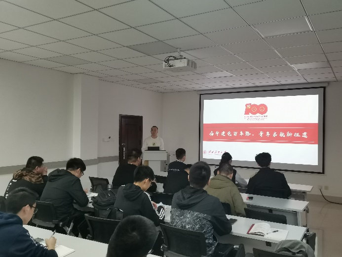2017本科生第一党支部、2017本科生第二党支部邀请学校党史宣讲团青年讲师为同学们讲授党史专题党课。党课由2017级本科生第二党支部书记李国敬主持。