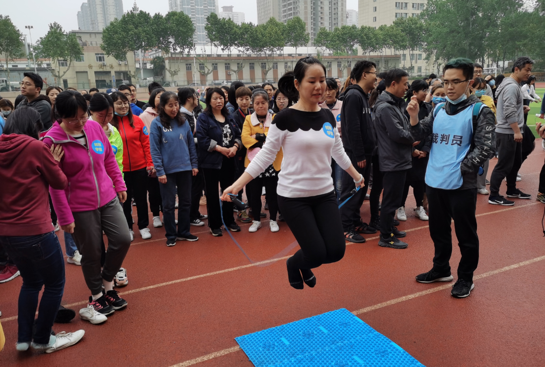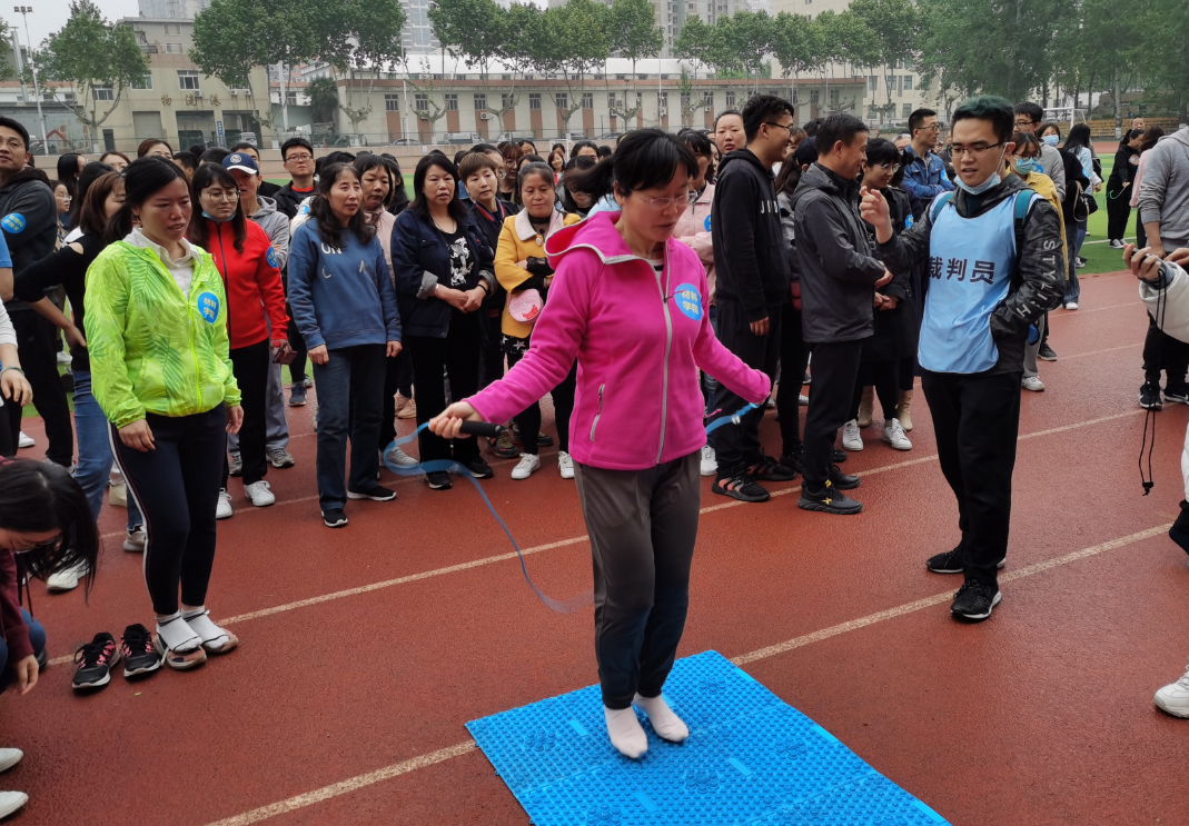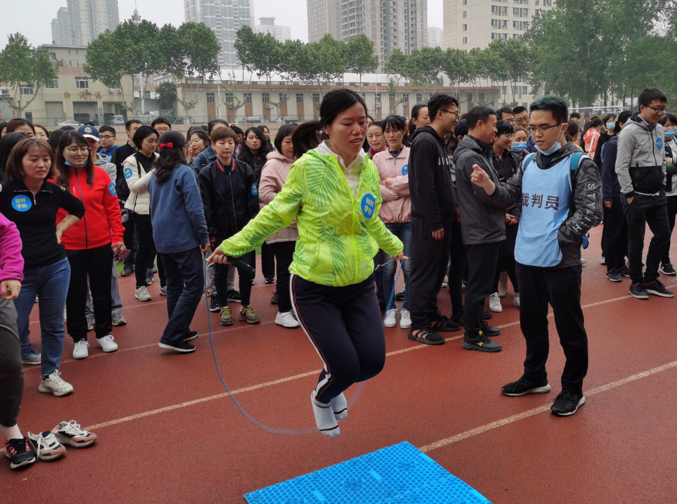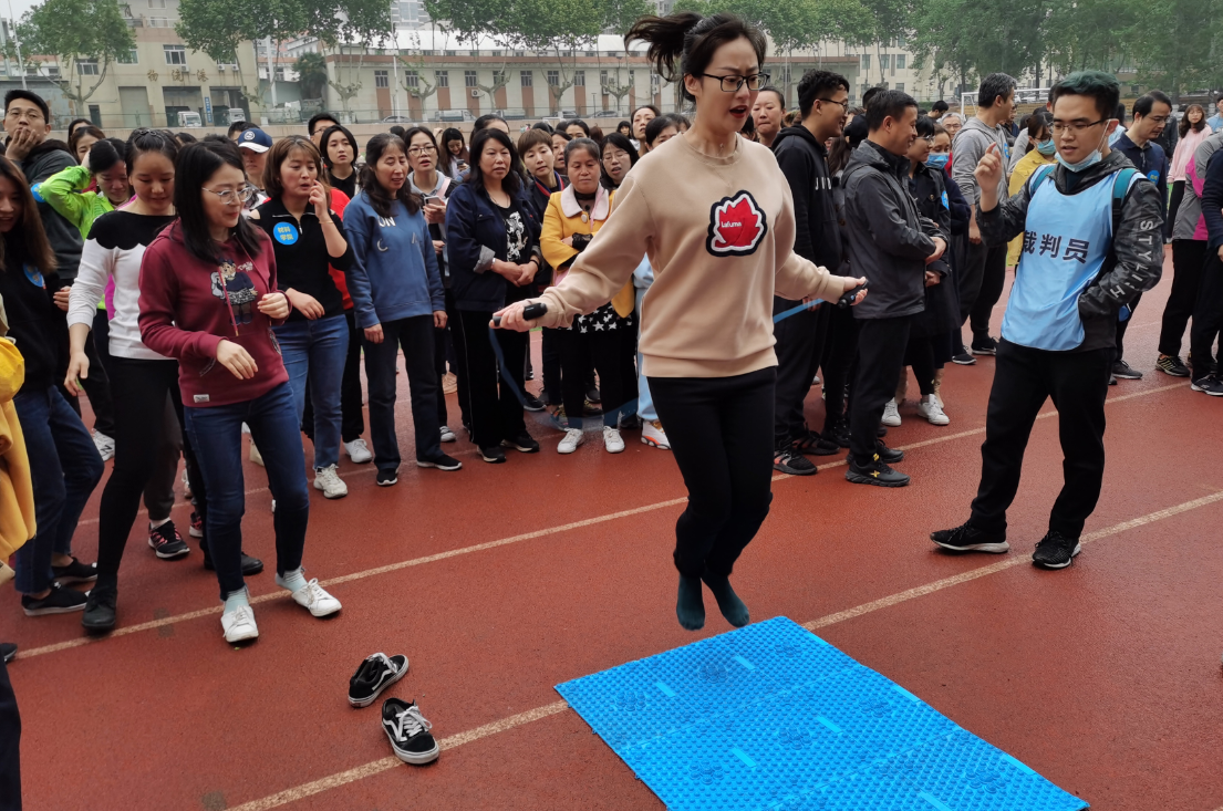 “指压板跳绳”项目中,大家整齐列队,平滑轮换,上场者鼓足跳劲,龇牙咧嘴,这“酸爽”,才够劲!接替者摩拳擦掌、跃跃欲试,这期盼,咋还不到我!跳完者不停喊加油,这比赛,真刺激!以小组第一的成绩顺利收官!