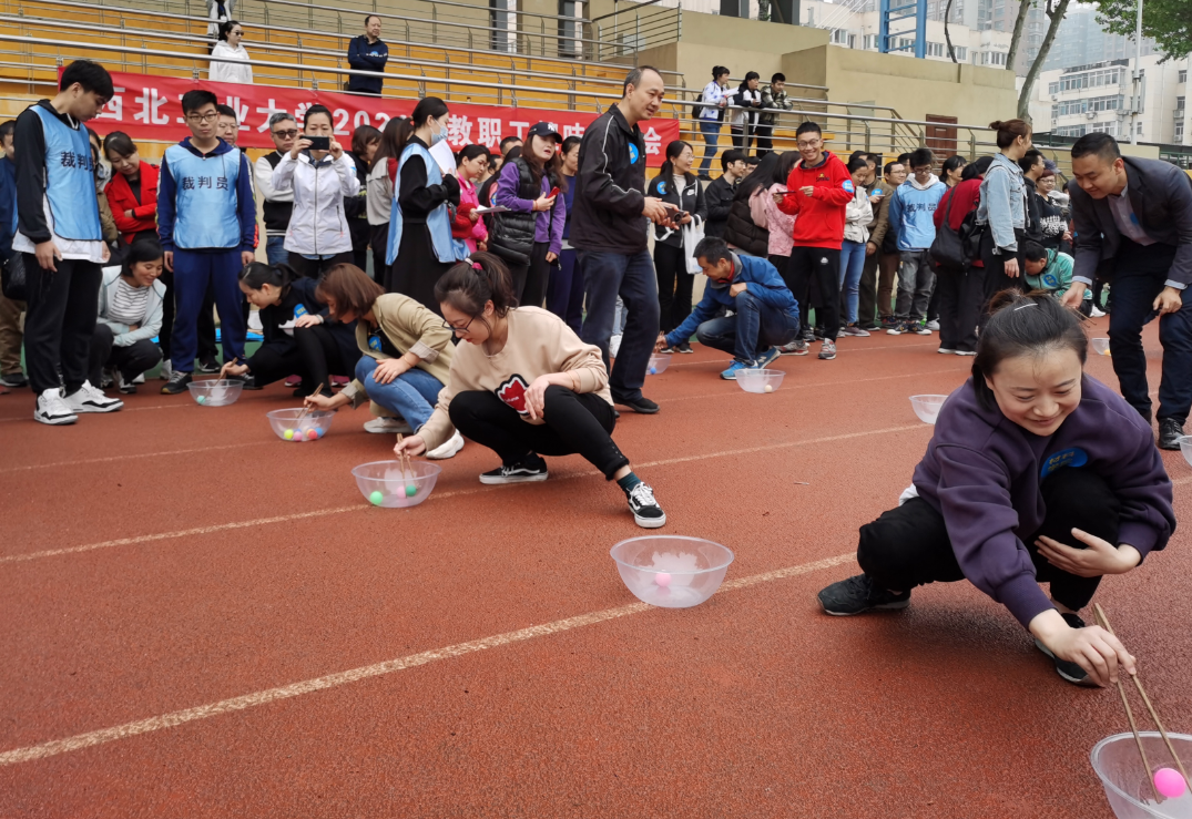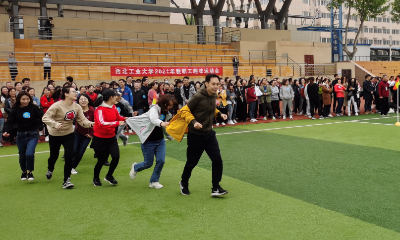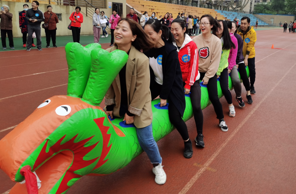 组织教职工参加了在友谊校区田径场举行的2021年教职工趣味运动会。本届趣味运动会项目设置了5个集体项目,包括、“旱地龙舟”“车轮滚滚”“指压板跳绳”“接力夹乒乓球”“欢乐贪吃蛇”。