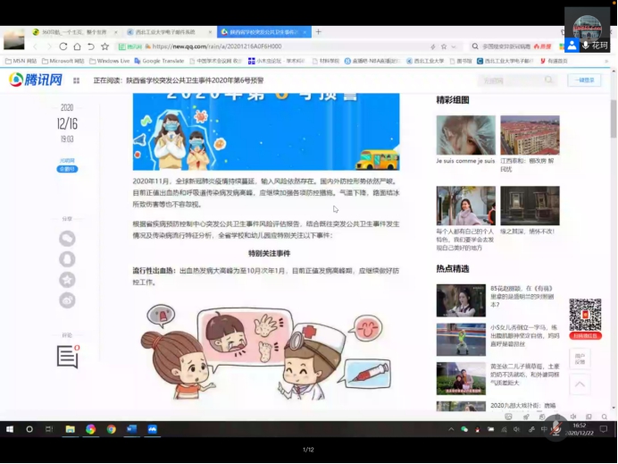 花珂老师提醒同学们要提前打印准考证,准备好有效身份证件、健康码、安全承诺书等考试所必需的相关材料,在考试过程中要放平心态稳定发挥,不畏难,不轻易放弃,坚持到底。大会最后,花珂老师带领大家学习了《陕西省学校突发公共卫生事件2020年第6号预警》文件,强调了卫生问题的重要性。