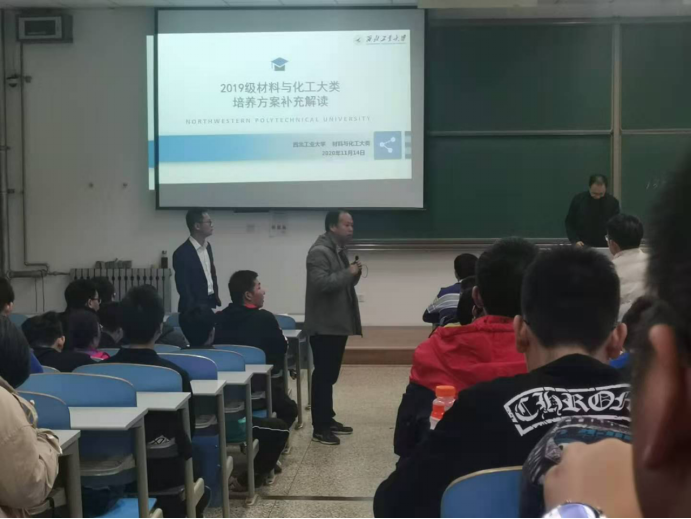 副院长王永欣教授、材料成型及控制系罗皎教授、复合材料系张程煜教授以及材化大类200余名同学在辅导员老师孙佳的主持下于教学西楼D座201教室召开专业宣讲活动。