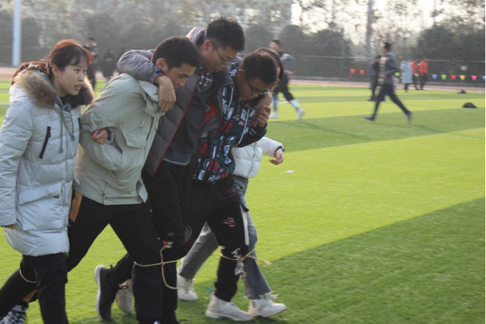 在比赛间隙,组织开展了“趣味接力跑”竞速跑,丰富了比赛内容,提高了同学们的积极性,强化了本次比赛的教育意义。接力内容包含五人六足、夹球跑、竞速跑3个项目,学生以学院为单位自愿报名参与。