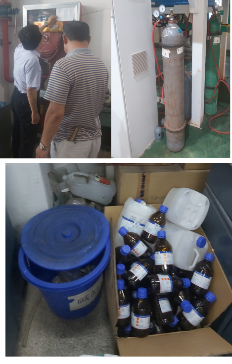 检查组分为两个小组进行检查,按照安全责任制落实、教育培训、安全检查、消防设施、化学品存储与出入库管理等方面进行了全面细致的检查,特别对实验室制度更新不及时,安全培训教育记录不全,实验室杂物堆积较多,气瓶摆放不正规,化学品存储不规范,用电不安全,实验室环境较差等存在安全隐患的问题进行了重点检查。针对检查中存在的问题,对各实验室下发了整改通知书,要求务必限时落实整改措施。