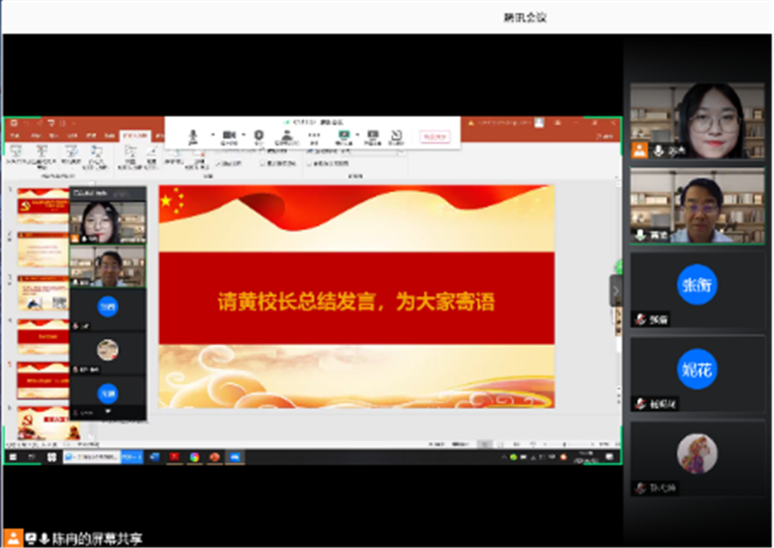 黄维常务副校长对支部活动中同学们的积极态度、热烈氛围及相关建议进行了肯定,并对同学们提出三点希望:一是希望同学们坚守初心,爱国奋斗,努力投身祖国国防科技事业。作为西工大学子、硕士生党员,大家应该牢记入党初心,秉承“公诚勇毅”的校训、发扬“三实一新”的校风,在学习工作中传承“古路坝精神”,续写“三航精神”新篇章,为实现强国梦贡献西工大智慧。二是希望同学们坚定信心,砥砺奋斗,努力抒写属于自己的青春故事。当前正值学校“双一流”建设的关键时刻,作为国防院校的优秀学子,同学们要始终践行至诚报国使命,发扬不怕苦不怕累的精神,为实现“两个一百年”奋斗目标和中华民族伟大复兴的中国梦贡献自己的一份力量。三是希望同学们立足科技前沿,不断求索真理,勇攀科学技术高峰。要始终牢记习近平总书记的殷殷嘱托,服务于国家进步和民族发展,努力解决各领域的“卡脖子”问题,各位同学一定要扎实学习好专业知识,直面困难、潜心科研,以青春报国、以科技强国。最后,黄维常务副校长表达了疫情结束后与同学们相约校园,在线下进一步开展交流的期待以及对大家美好的祝福。
