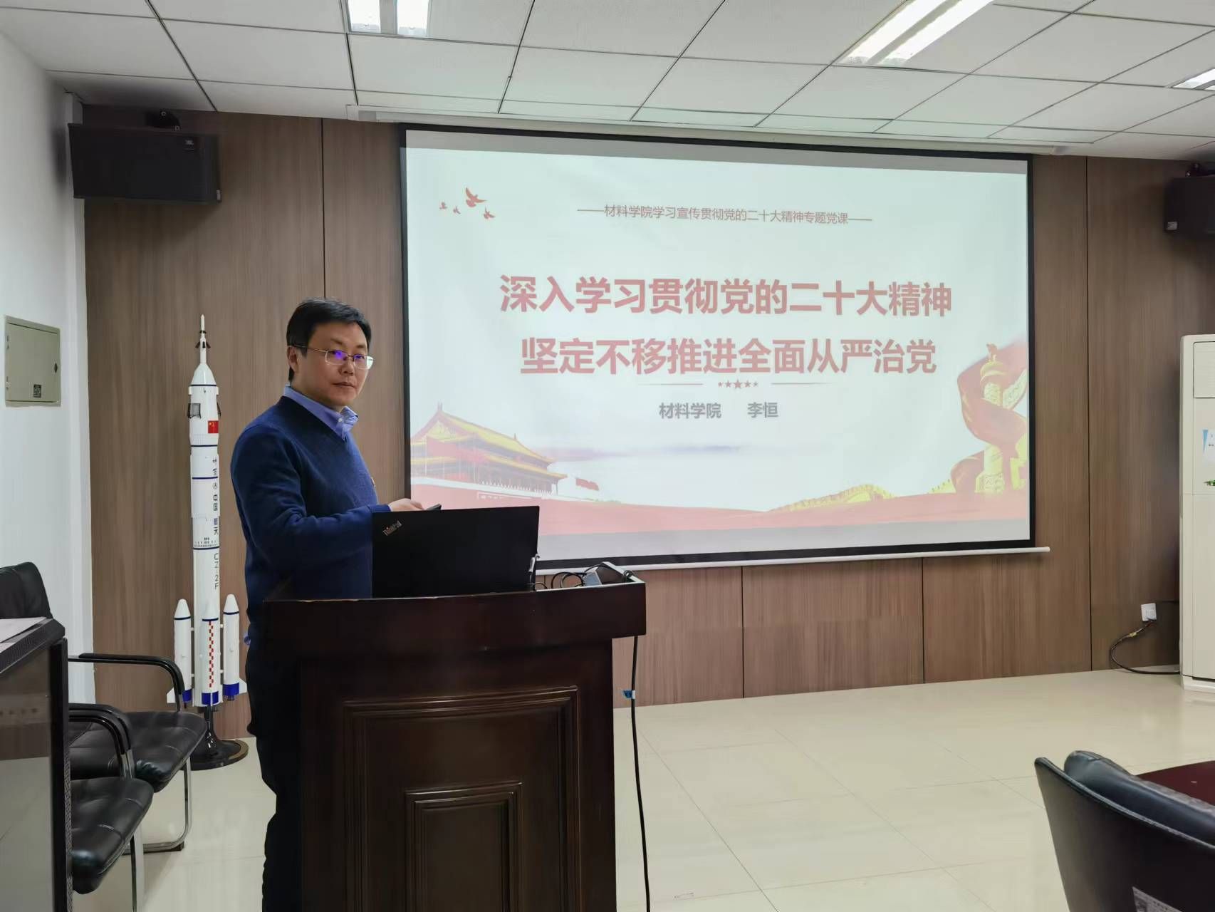 党委副书记(主持工作)李恒为全体教工党支部书记、机关党支部全体党员做了题为“深入学习贯彻党的二十大精神 坚定不移推进全面从严治党”的专题党课。