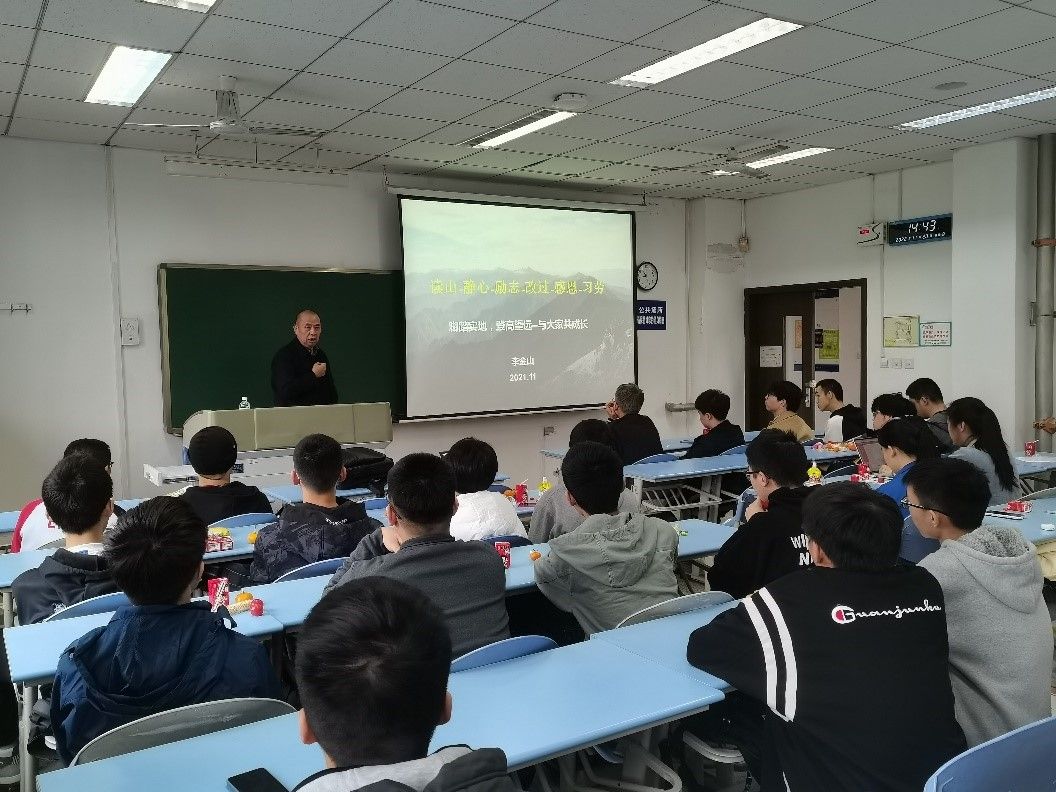 之后李金山老师以《读山-精心-励志-改过-感恩-习劳》为题,通过与同学们分享爬山经历,为同学们上一堂生动的思政课。不仅有“终南捷径”的趣事,还有钟灵毓秀的风景和意蕴丰富的诗句,对于每个同学来说都是一次精神上的洗礼。