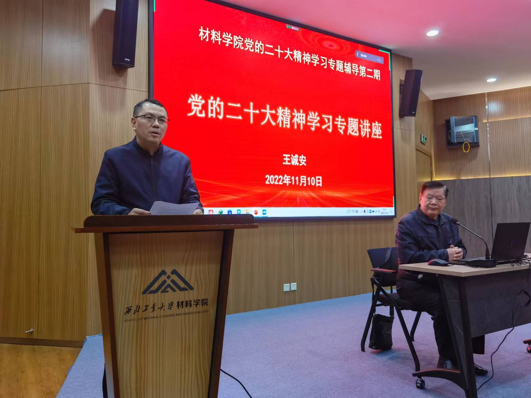 党委副书记蔡利剑主持,党委副书记(主持工作)李恒介绍了王诚安教授学术简介。