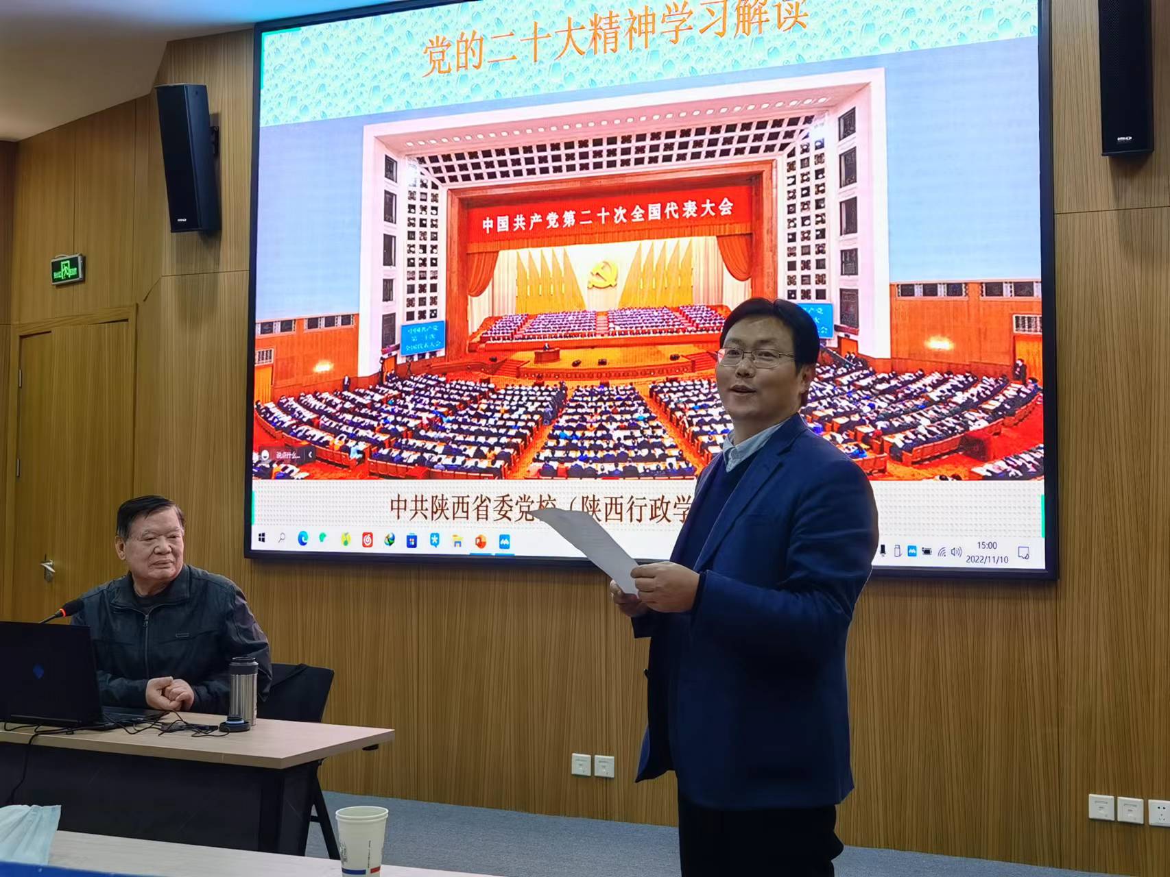 1110日下午,天使动漫 举办“大材良治”——党的二十大精神学习专题辅导讲座第二期,本次活动由锻压第一、第二研究生党支部承办。学院邀请省委党校王诚安教授讲授“党的二十大精神学习解读”,学院党委理论学习中心组成员、机关党支部党员、锻压第一和第二研究生党支部党员聆听了本次讲座。天使动漫 党委副书记蔡利剑主持,党委副书记(主持工作)李恒介绍了王诚安教授学术简介。