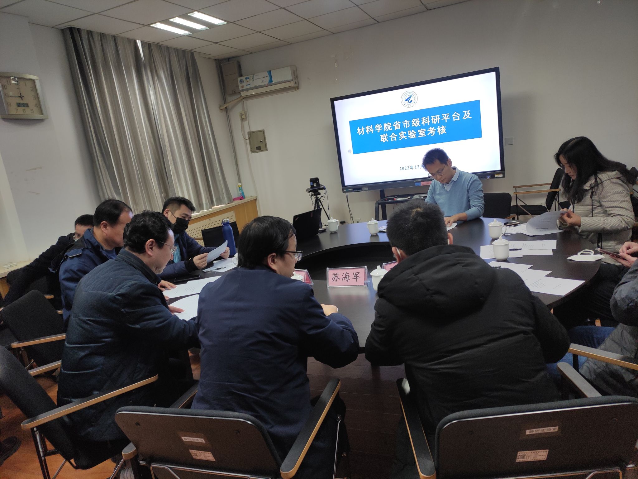 在公字楼345会议室开展了学院省市级科研平台及校企联合实验室平台考核。学院副院长苏海军,院长助理孙佳,7位受邀专家及实验室主任参与了此次考核评估工作。本次参与考核评估的平台有4个重点实验室、3个工程中心、2个校企联合实验室。