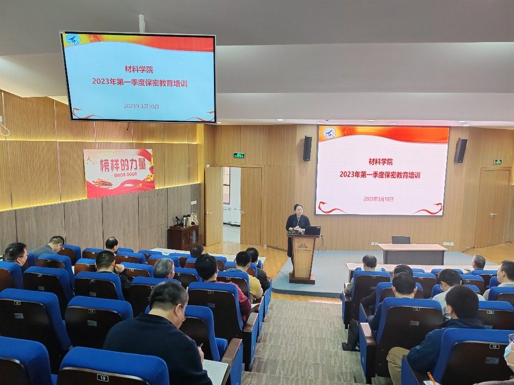 在研究生东馆C205报告厅召开学院2023年第一季度保密教育培训。会议特邀保密处综合管理科科长于竹君做《保密基本知识与日常办事流程》的专题培训。全院涉密人员以及科研办人员参加了会议。