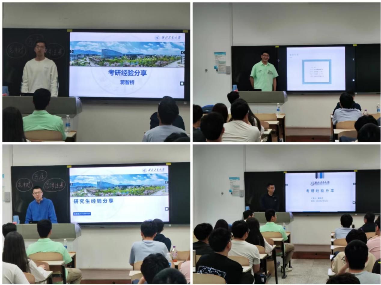 会议第二部分由董烁华、曹明洋、洪启泱、蒋智桥四位2019级考研高分优秀学长依次分享了考研经验和心得,通过对过去一年考研过程的总结和复盘,为2020级学生提供了可借鉴的考研日程规划建议,并从各自的优势科目分享了备考经验,并着重强调考研过程中的情绪调节和心理建设的重要性。在最后的互动问答环节中,对如何选择适合自己的辅导教材、跨专业考研需要提前做好哪些功课、考后调剂等问题也做出了详尽解答。同学们纷纷表示此次经验分享会收获颇丰,为接下来的考研准备厘清了思路,找准了方向。