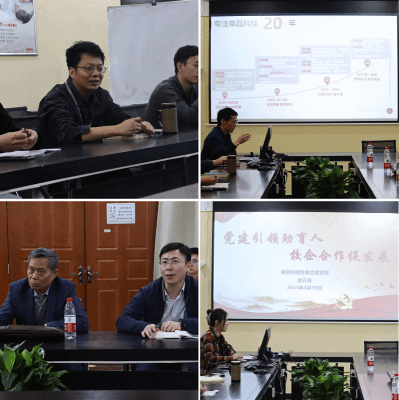 碳材料师生融合党支部书记贾瑜军和支部副书记赵元肖分别介绍了支部党建日常工作和科研方向等情况,表示支部始终秉承“扎根西北,奉献国防,薪火相传,以枝带叶”的特色党建工作模式,把握支部“传、帮、带”发展宗旨,在创新实践中形成了“党建引领、共建提升、科研育人”融合驱动力,以“党建+”科研理念逐步培养了大批持续奋战在材料学科前沿、国防军工领域的领军人才和服务家乡社会的基层人才队伍。