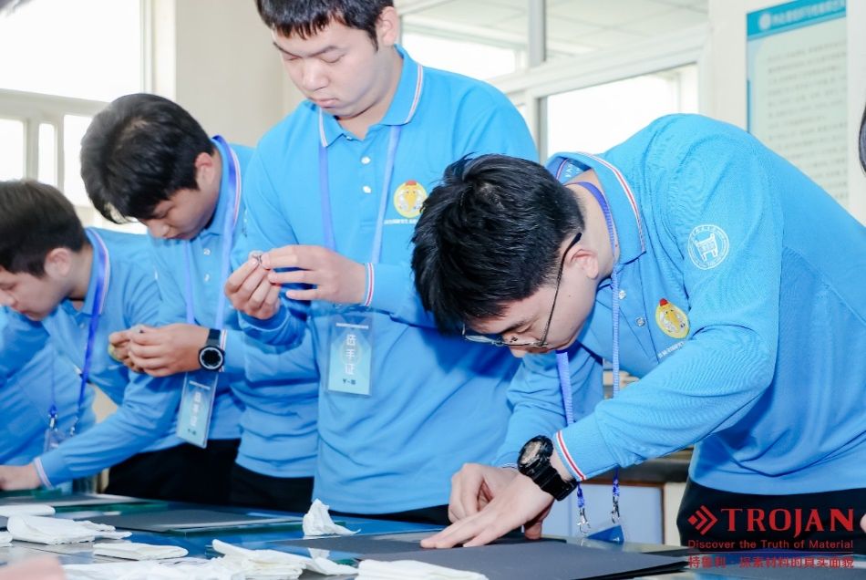 首届全国研究生金相实验分析大赛决赛分为线上和线下两个赛段。线上赛段采用国家虚拟仿真实验教学一流课程《金属材料成分、工艺、组织和性能一体化设计虚拟仿真实验》,选手们在北京科技大学材料实验中心的智慧教室进行了2个小时虚拟仿真实验操作,圆满完成线上赛段的比赛。线下赛段中所有选手均使用未知成分的样品,根据需要选取不超过5张的手磨砂纸(400#,600#,800#,1000#,1500#等),自由选择手磨或机磨,以及手磨加机磨的混合方式进行预磨,要求在规定的45分钟之内完成样品表面的打磨、抛光、腐蚀及在光学显微镜下进行组织观察,确定未知样品的成分,组织及热处理状态,判断材料可能的热处理工艺,完成金相实验分析报告。