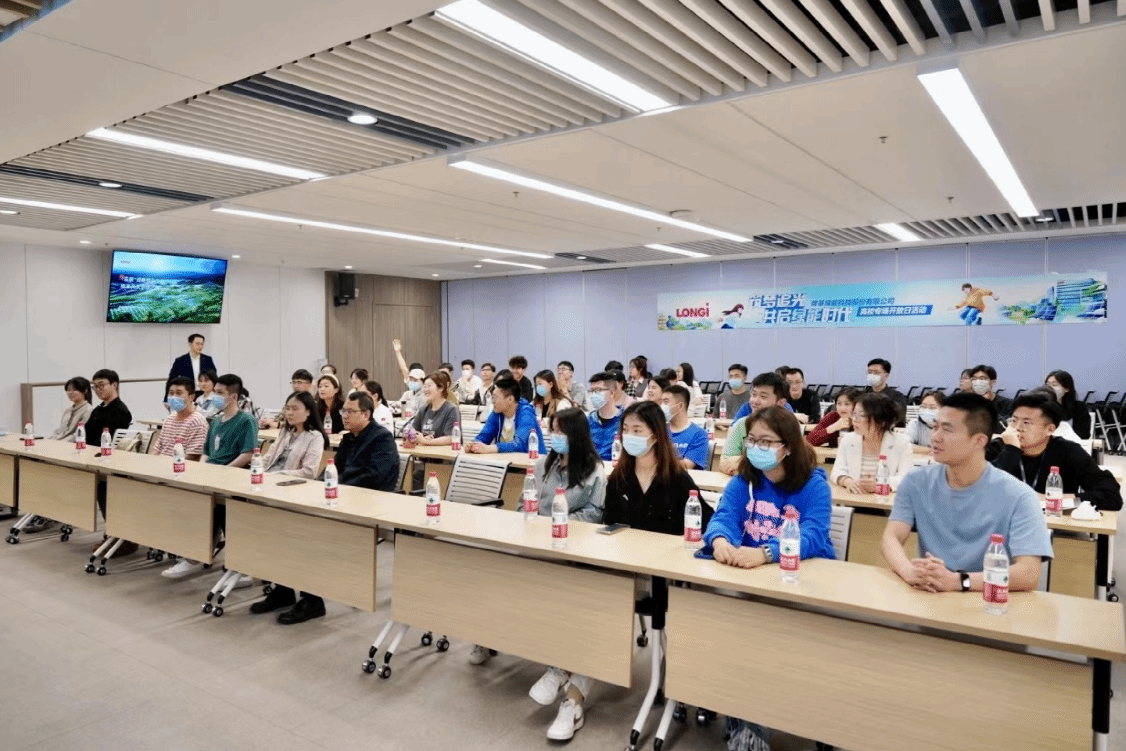 学院师生一行受到了隆基绿能品牌管理部高级经理李濛、雇主品牌负责人周浩等领导的热情接待,李濛就全球变暖、隆基绿能公司概况及校招计划进行详细讲解,并就职业规划方面为毕业生提供了很多实质性的建议。在交流环节,双方均表示希望发挥各自优势,在人才招聘、技术攻关、成果转化等方面推进合作,努力实现产学研双赢的目标。会后,在周浩的带领下,学院师生参观了隆基绿能展览馆,进一步深入了解公司发展历程及公司在新能源领域的应用和产品开发。