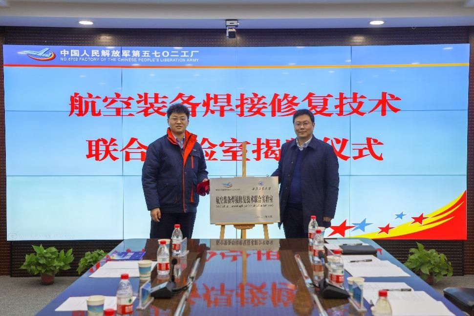 会议最后,在工厂机关单位代表见证下,吴雪猛与李恒共同为“航空装备焊接修复技术联合实验室”揭牌。