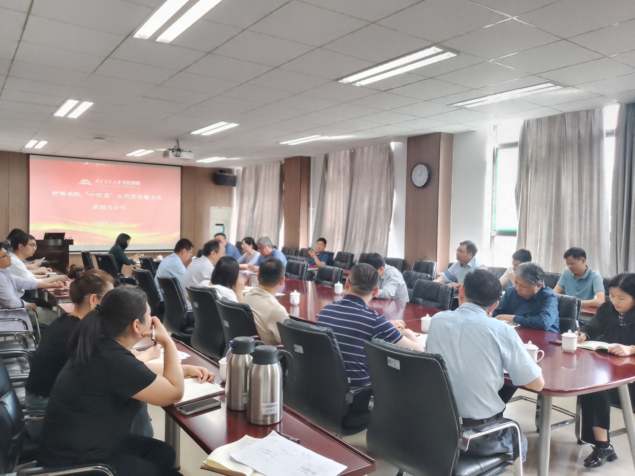 首先,王永欣向与会人员传达了教材建设相关文件精神,介绍了学院目前教材建设现状和战略性新兴领域教材规划情况,他强调要牢牢抓住人才培养根本任务,以教材建设为牵引,推动材料学科高质量发展。王洪强组织“十四五”期间立项的教材项目负责人依次汇报了每本教材的建设现状、完稿时间、出版时间等,确保立项教材的编写进度。叶奇对教材编写团队老师们的辛勤付出表示感谢,并表示学院人才培养办公室将为推动教材建设做好服务保障性工作。