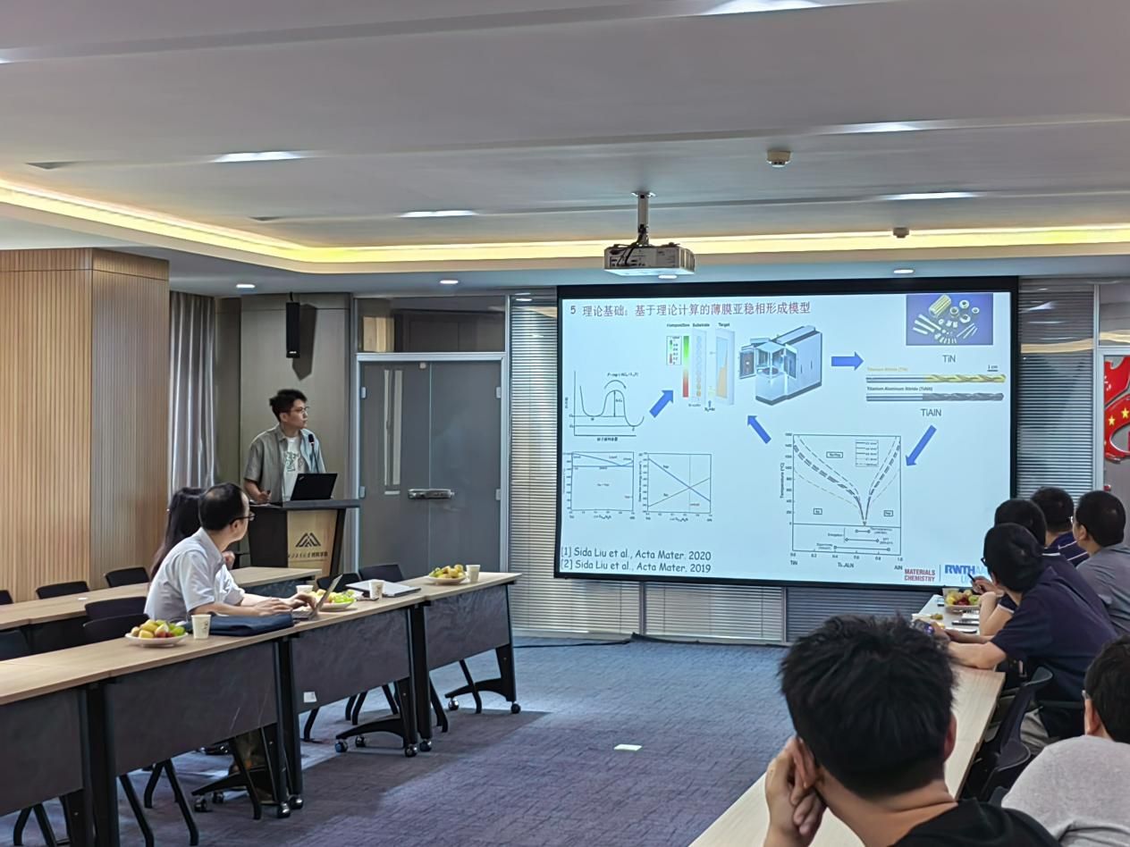 刘思达教授的报告着重在于理论计算指导高性能材料的设计与制备。一方面,因为汽车轻量化作为车辆节能减排的有效手段,已成为新能源汽车技术革命的重要发展目标。刘教授以轻量化、高强度的Al-Mn合金为研究对象,介绍了一种理论计算的薄膜亚稳态相组成模型。基于该种理论模型成功设计出了一种双相Al-Mn-Ru合金薄膜,其表现出优异的催化性能和力学性能。另一方面,对于块体合金材料,详细介绍了TCB在Al-Mn合金和Al-Si合金中的应用,并分析了TCB对Al-Mn合金的强化机制、组织演变以及对Al-Si合金的抗“中毒”行为影响。