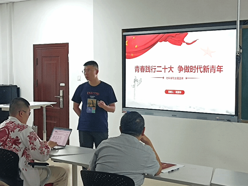 团委书记赵清华讲授“青春践行二十大,争做时代新青年”主题团课,学院党委副书记蔡利剑出席本次活动。