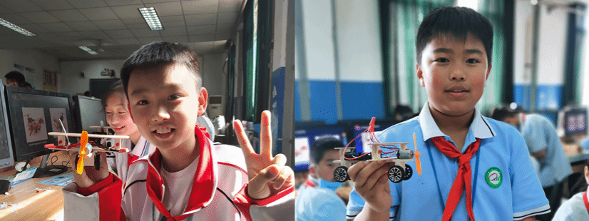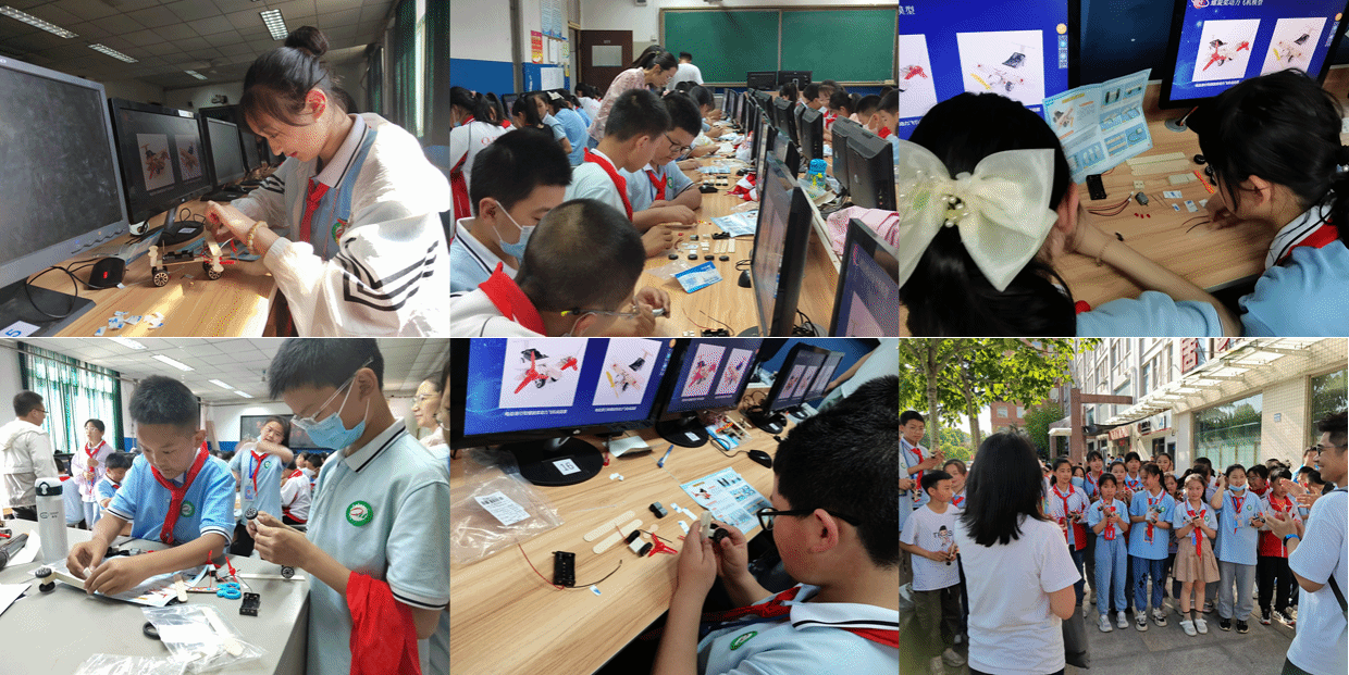 学生们拿到模型后兴趣盎然、跃跃欲试,在认真听完讲解后积极动手制作。在老师和大哥哥大姐姐们的帮助下,孩子们纷纷组装完成了自己的航模,并成功试飞。