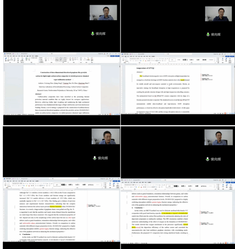 为提升师生国际视野和科研写作能力,培养前沿科学技术和关键问题聚焦意识,碳材料师生融合党支部邀请前英国诺丁汉大学侯向辉教授多次为支部党员及师生开展线上“SCI论文写作辅导以及留学经验分享会”等系列交流活动。