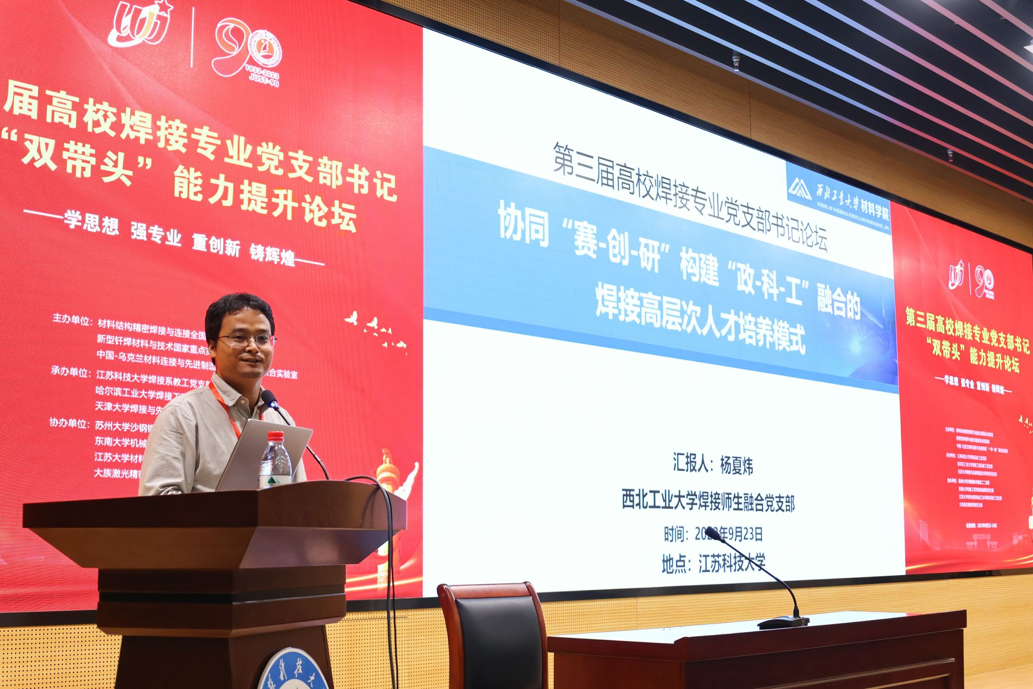 焊接师生融合党支部书记杨夏炜担任本届论坛联合主席,支部博士后苏宇参加了本届论坛。杨夏炜以《协同“赛-创-研”,构建“政-科-工”融合的焊接高层次人才培养模式》为题,代表支部做了大会报告,针对焊接科研育人创新平台的建设和发展,进行了详细介绍,打造高水平的育人创新平台,夯实学生的科技创新能力,旨在为深化焊接专业教育教学改革、助推具有理论知识丰富、实践能力强、创新意识和创新精神的人才培养模式的构建,提高学生的综合能力。同时,经论坛组委会讨论决定由天使动漫