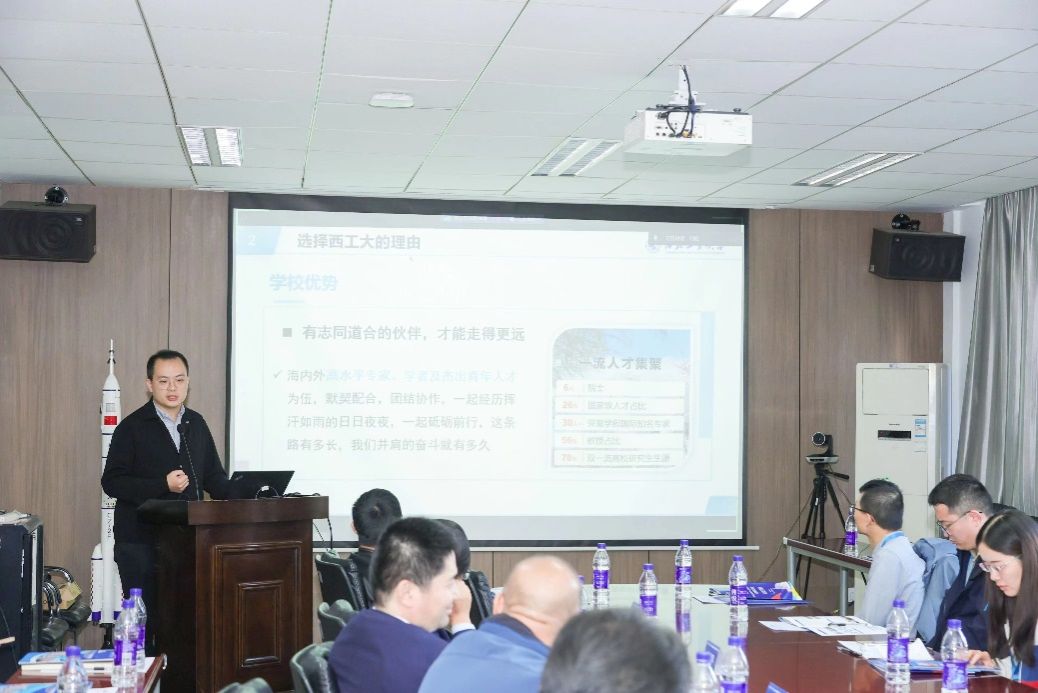 李金山介绍了学院的历史沿革、学科发展布局规划、学院师资力量、教学科研和国际合作情况、取得的成果、对青年人才的支持举措及西安的地理人文环境等情况。他讲到,西工大天使动漫