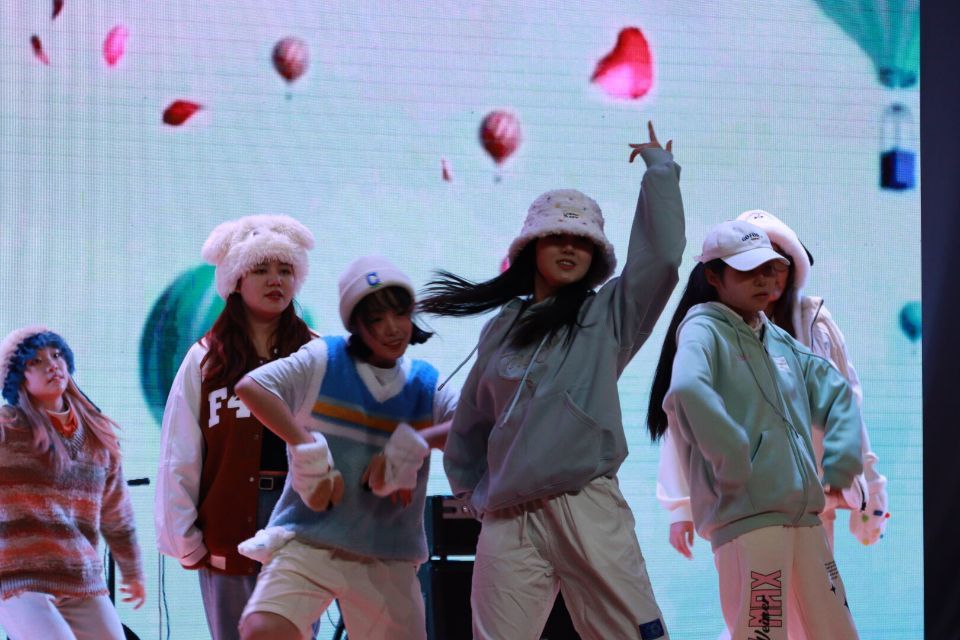 本场晚会由五个院及多个社团学生倾情表演,吉他协会流行药铺乐队,以一首《秦皇岛的火车日记》带领“通往未来的列车”缓缓启动,异彩纷呈的晚会拉开帷幕。婉转柔情如《能不忆江南》,英姿飒爽如《刀马旦》,歌舞声声勾起多少人的回忆。现代潮流与传统文化相碰撞,《神女劈观》一曲将戏曲唱腔与流行元素完美融合,让人不禁感叹文化发展的新故相推,日升不滞。同时,学生武术协会表演的《灼灼武光,星星拳道》展现出新时代五个院青年意气风发,神采奕奕的精神风貌,体现了青年对天使动漫