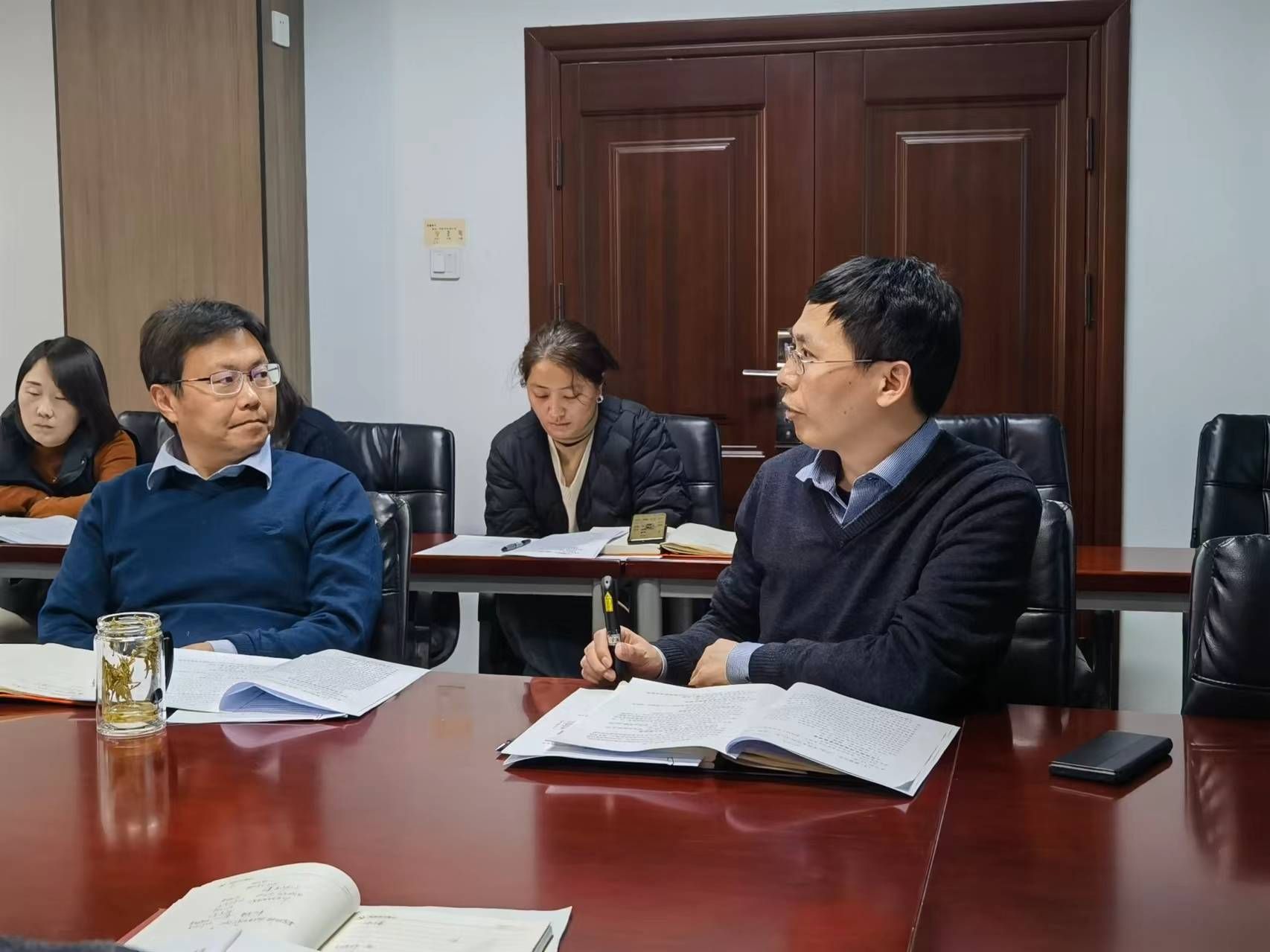 副院长王洪强、罗皎,党委副书记禹亮等围绕学院本科生和研究生人才培养、科学研究、师资队伍、国际化等展开汇报。