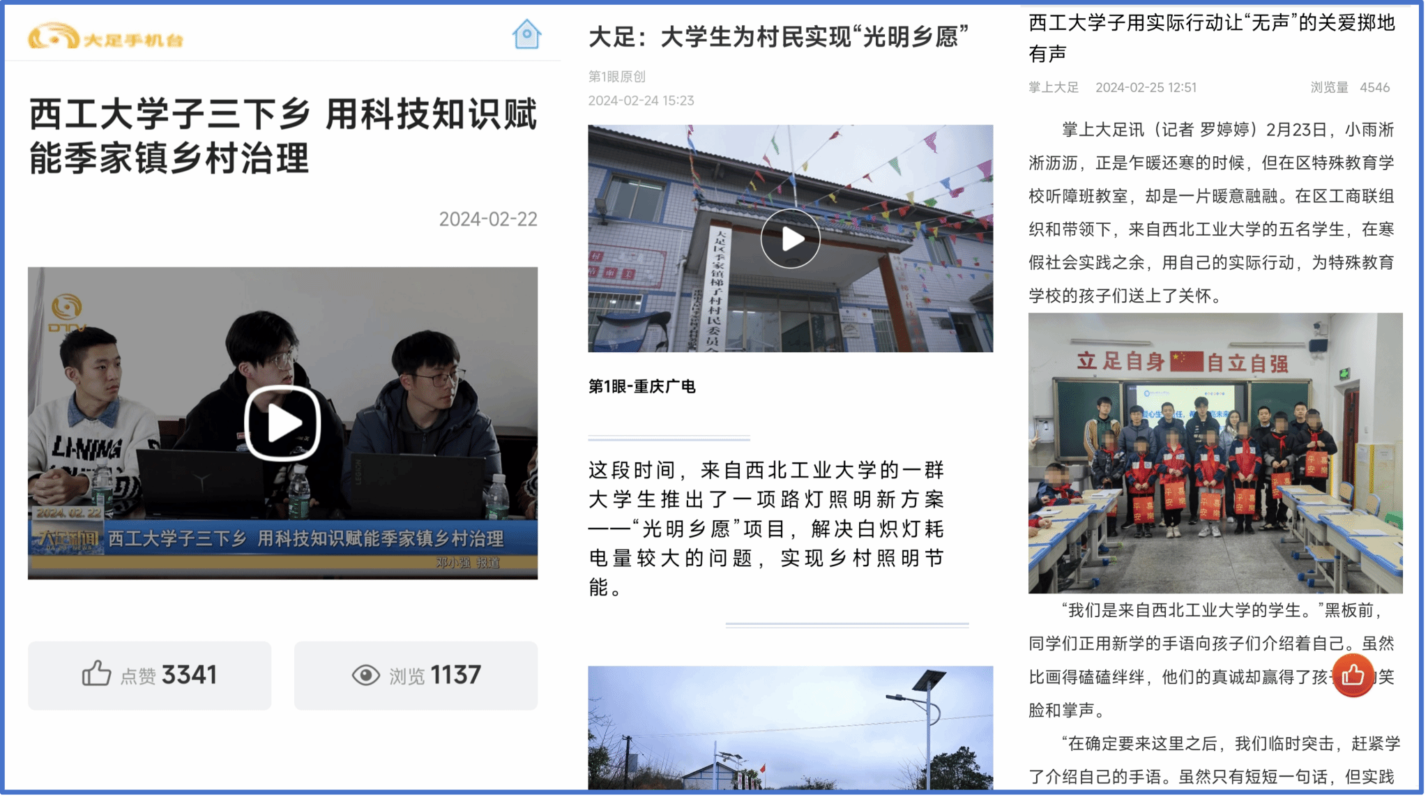 实践团队的成果获得了当地的认可,先后被重庆日报、华龙网、重庆广电(第一眼)、掌上大足以及大足手机台等报道。