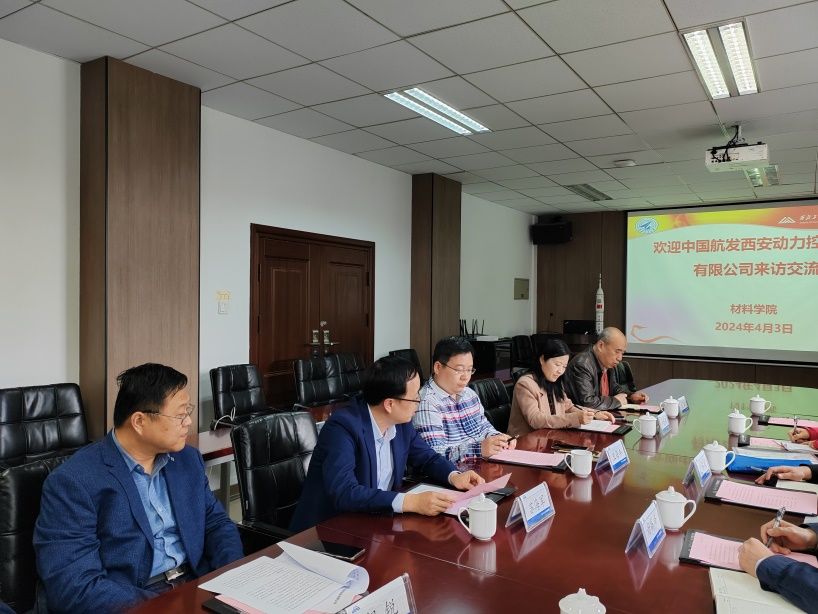 宣传片,随后苏海军对学院的发展沿革、学院建设、师资队伍、人才培养、科学研究、成果转化以及校企合作等方面进行了整体介绍。刘静对中国航发西安动力控制科技有限公司基本情况及公司目前承担的型号任务进行了简介,并针对当前遇到的材料铸造均匀性、异常磨损等技术难题和需求进行了介绍。