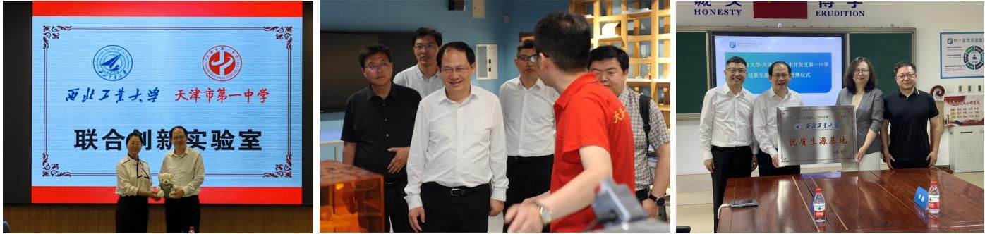代表分别赴天津一中、新华中学、天津市第二十中学、天津英华中学、天津市经开区第一中学等五所重点中学与相关学校领导座谈交流,重点围绕进一步加强优秀生源基地建设达成一致意见,并举行了联合创新实验室揭牌仪式、优质生源基地授牌等仪式。