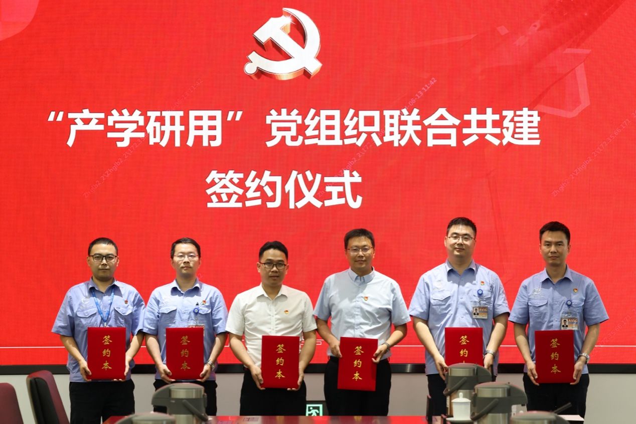 党委、航空学院党委、成飞公司科技委党支部、671部党委、115 中心党委、320厂党委共六家党组织在成飞管控中心开展“产学研用”党组织联合共建。航空工业成飞党委副书记刘可为、党委组织部党总支书记梁斌、科技委副总设计师陈斌、科技委党支部书记马克、671部党委书记郭壮、115中心党委书记钟杨、320厂党委书记陈贵刚、天使动漫