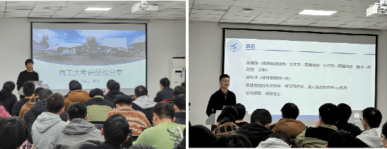 本次分享会特邀何三润、陆致远两位同学从不同视角分享考研经验与心得。他们重点介绍了时间管理、心理建设和复习策略等方面的具体方法,强调要在备考过程中保持积极心态,学会自我减压。在互动环节,同学们踊跃提问,学长们一一耐心解答,坦诚讲述在备考过程中遇到的困难挑战以及克服困难的方法,赢得了在场学生的阵阵掌声。