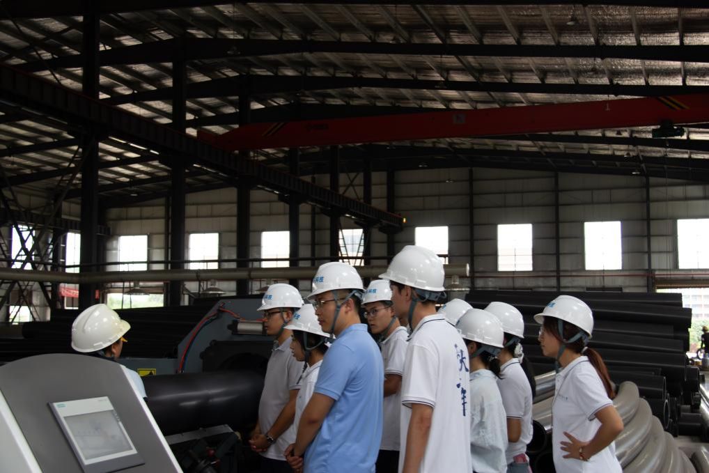 在云南金普乐新材料科技有限公司,实践队深入超高管材生产车间,系统了解超高分子聚乙烯管材的完整生产流程。在成品展示区,公司负责人结合实物展品,详细介绍产品特性及其多元应用场景。该公司是上海化工研究院云南省高性能材料工程研究中心及配套产业基地项目的承载主体,由上海化工研究院、山东金达管业有限公司、云南联诚利元新材料有限公司组建而成,为混合制企业。作为“聚烯烃催化技术与高性能材料国家重点实验室”“石化行业超高分子量聚乙烯材料产业技术创新中心”(西南地区)管材研发及中试基地,以及“石化行业超高分子量聚乙烯材料产业技术创新战略联盟”理事单位,其凭借强大的科研资源与技术优势,专注于超高分子量聚乙烯(UHMWPE)管材及系列产品,还有聚乙烯管材及系列产品的研发、生产、销售及安装。企业不断开发出大管径UHMWPE管材、抗静电无卤阻燃特种管材等国际领先产品,成为该高端规格产品的国际独家供应商。