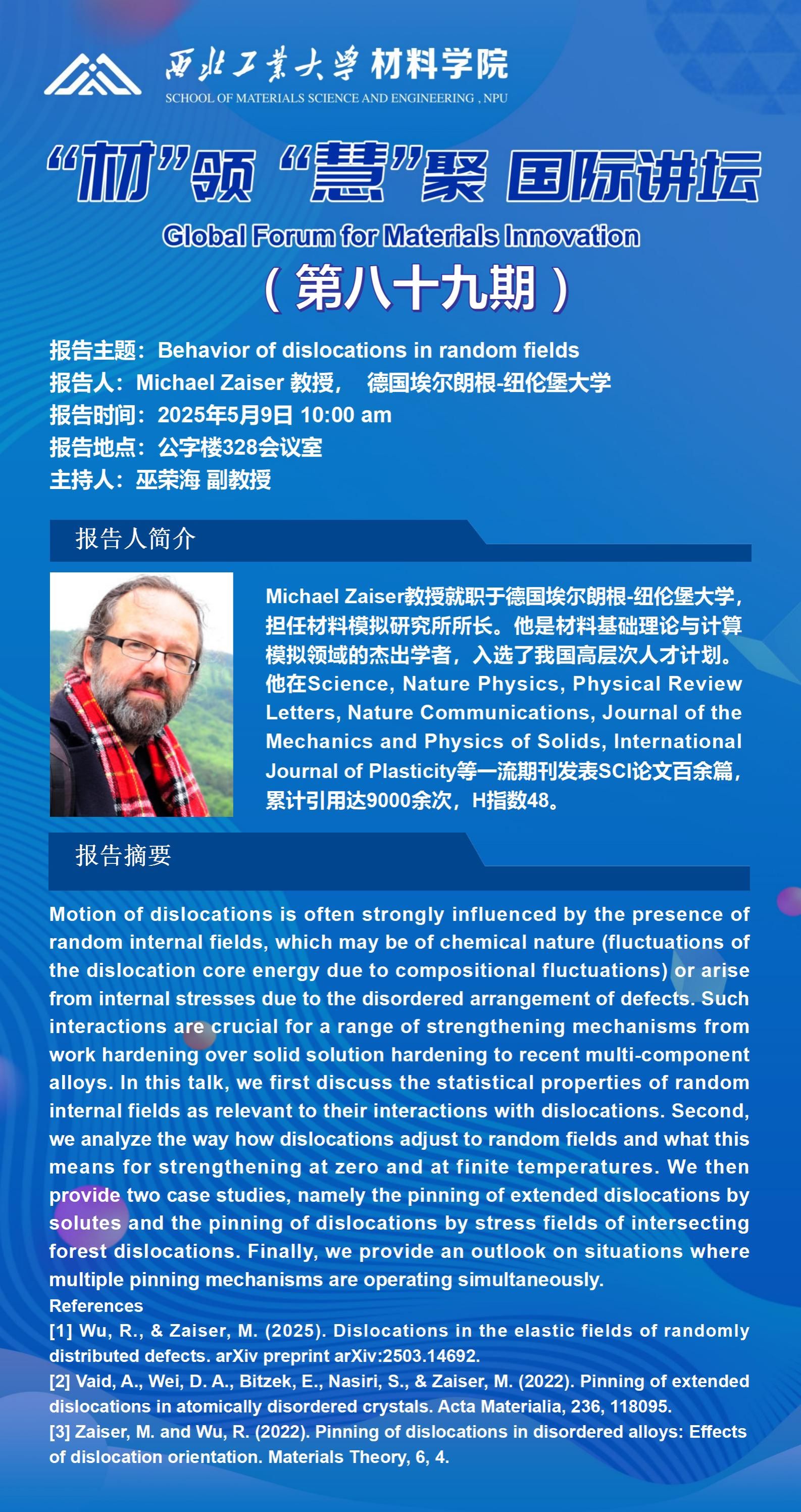 报告人:Michael Zaiser 教授,德国埃尔朗根-纽伦堡大学