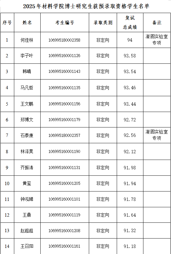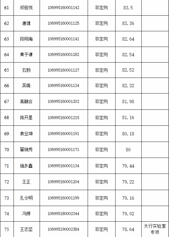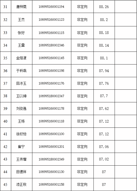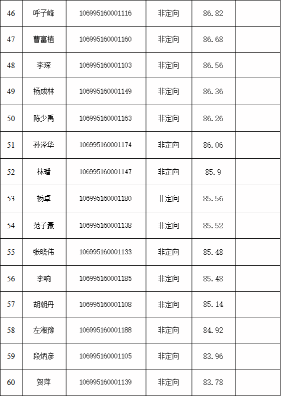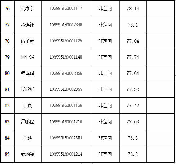 按照录取原则,经学院招生复试领导小组审核通过,现将获得预录取资格的考生名单予以公示。获得预录取资格的考生,将进入报考导师与考生双向确认环节,如有放弃,将按照专业总成绩顺序下延。相关规定如下: